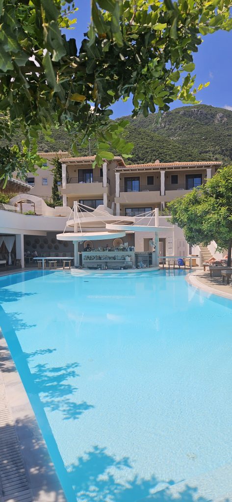 Die Hanglage des Hotels macht es sehr gemütlich, wie ein kleines Dorf. Insgesamt verfügt die Anlage über 3 Pools, wobei einer offiziell nur für Erwachsene ist. Zum Frühstück gibt es ein Buffet mit einigen gesunden Optionen wie Müsli, Obst und frischen Eierspeisen. Als Vielfrühstücker lege ich sehr viel Wert auf das Frühstück und es war alles da was man benötigt und von guter Qualität, frische Optionen sowie auch Süßes. Der Bereich war allerdings nicht so groß, so dass es in der Hauptsaison mit Sicherheit zu Wartezeiten kommt und es nicht ganz so entspannt ist als in der Vorsaison. Während des Tages ist ein Restaurant geöffnet sowie die Poolbar mit erfrischenden Cocktails. Getränke werden auf Wunsch zur Liege geliefert, ebenso Snacks. Abends gibt es 2 Restaurants, es kann von der Karte gewählt werden. Im Mai, in der Vorsaison war allerdings nur 1 Restaurant geöffnet. Das asiatische Fusionsrestaurant hatte leider geschlossen. Das Hotel ist sehr ruhig, kommt ohne Animation und dergleichen aus.